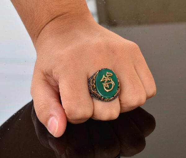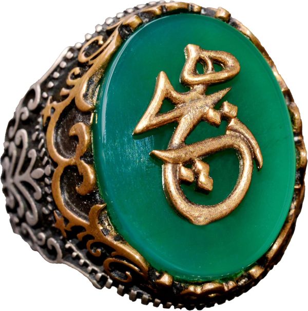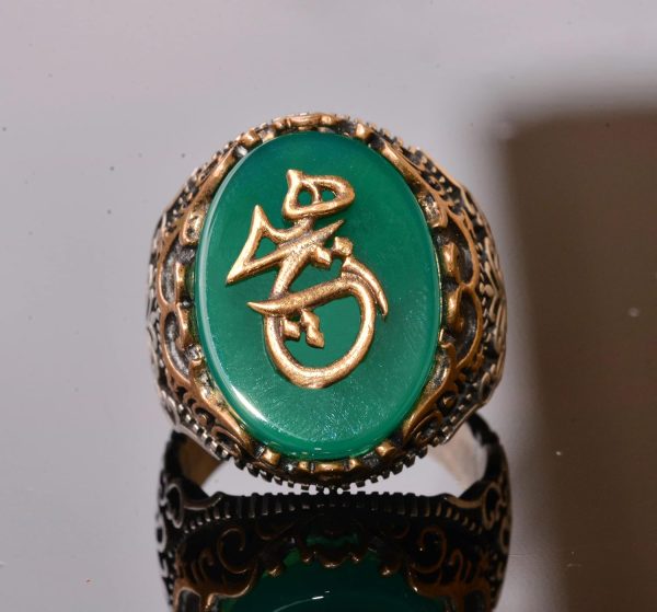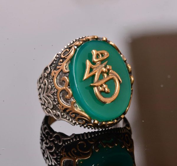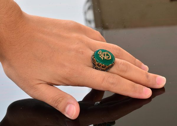 925 Ayar Gümüş Yüzük – Semboller Yüzüğü – Yeşil Ağaçtaşı Yüzük
