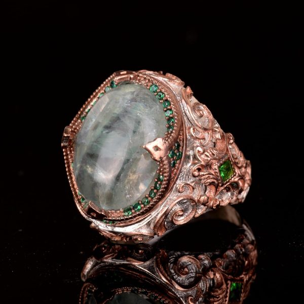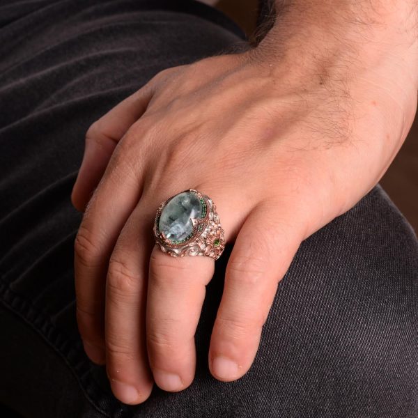 925 Ayar Gümüş erkek yüzüğü etnik tasarım, Eşsiz El Yapımı Gümüş Yüzük, Taş Ağırlığı: 20.56 gr