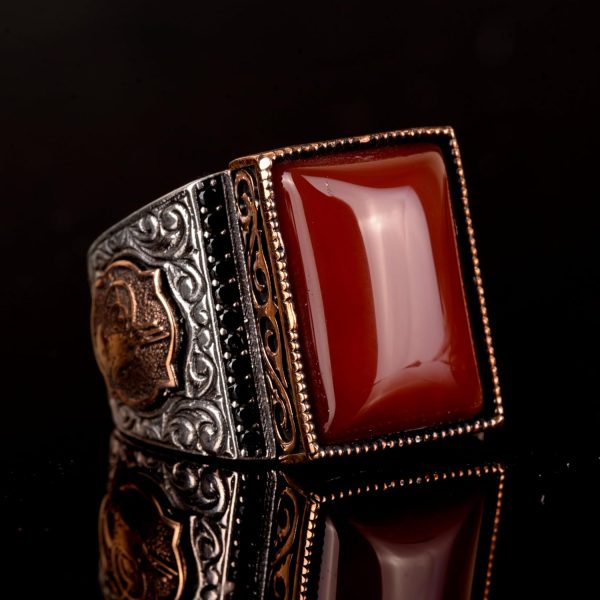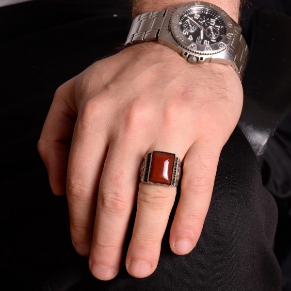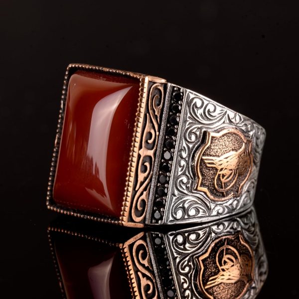 925 Ayar Gümüş Yüzük, Yapay Akik Taşı Yüzük, Tuğra Yüzük Ağırlık: 15.32gr