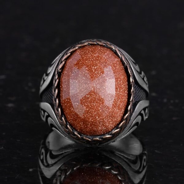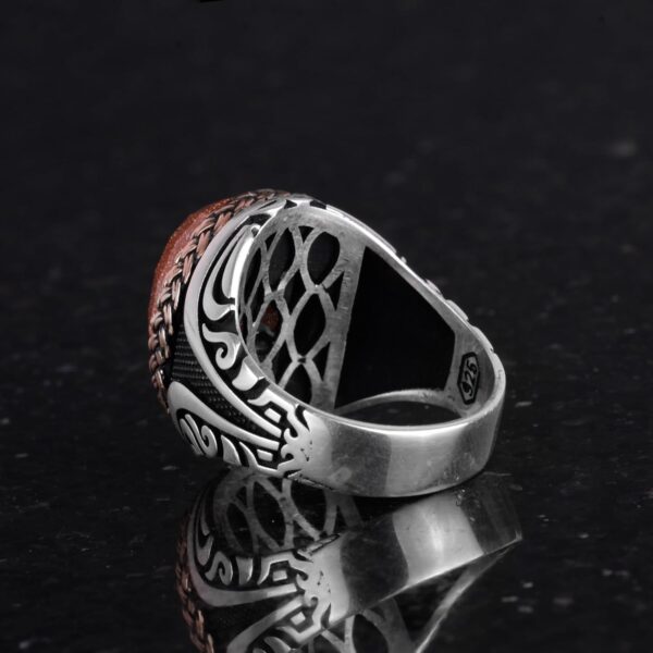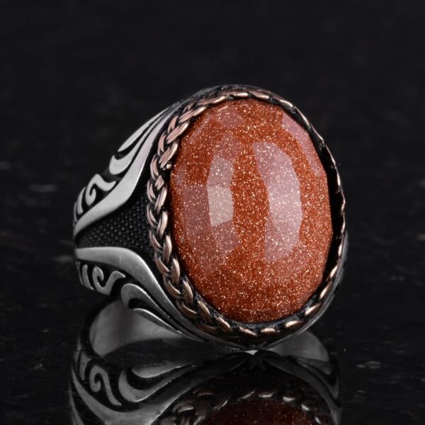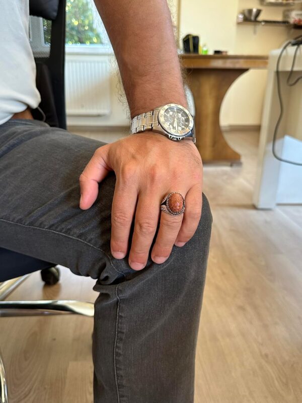 925 Ayar Gümüş Yüzük – Yapay Taş Gümüş Yüzük – El Yapımı Yüzük (Yapay kahverengi güneş)