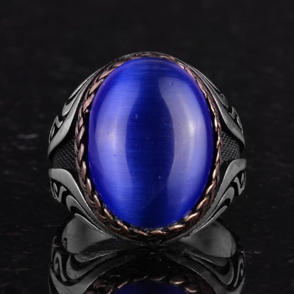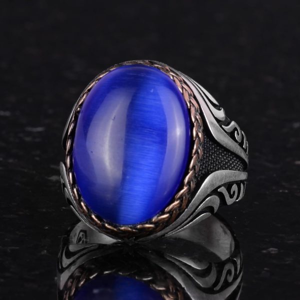 925 Ayar Gümüş Yüzük – Yapay Taş Gümüş Yüzük – El Yapımı Yüzük (Yapay Koyu Mavi Göz Taşı)