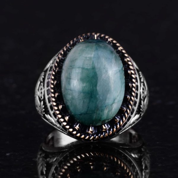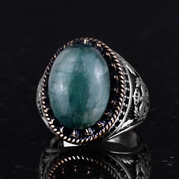 Bu yüzüğün merkezinde, canlı yeşil rengi ve bilgelik, büyüme ve yenilenme ile olan ilişkisi nedeniyle seçilen bir yapay zümrüt taşı bulunmaktadır. Zümrüt, tasarıma lüks bir dokunuş katarak, mücevherlerinde hem güzelliği hem de anlamı önemseyenler için mükemmel bir seçim yapar.