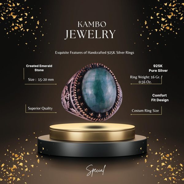 925 Ayar Gümüş Yüzük, Yapay Taş Yüzük, Kartal Sembolü Yüzük, El Yapımı Yüzük (Yapay Zümrüt)