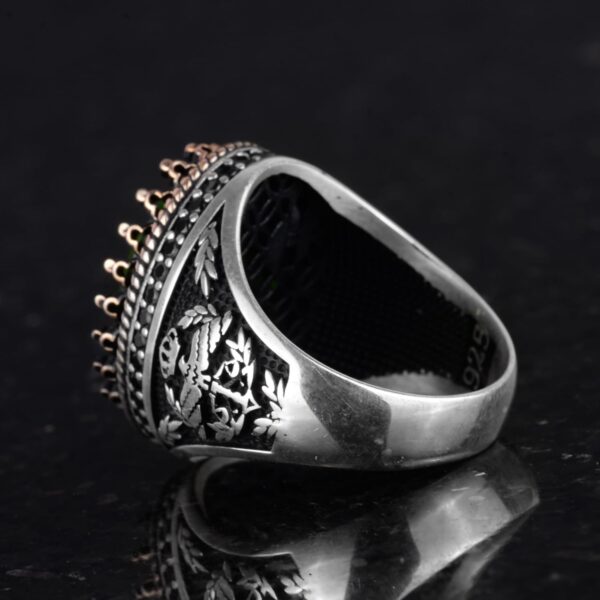 Erkekler için 925 Ayar Gümüş Yüzüki tanıtmaktan mutluluk duyuyoruz; geleneksel zanaatkarlığı sembolik tasarımla birleştiren çarpıcı bir takı parçasıdır. Bu yüzük, dayanıklılığı ve zamansız çekiciliği garanti eden kaliteli 925 Ayar Gümüş’ten özenle el yapımıdır.