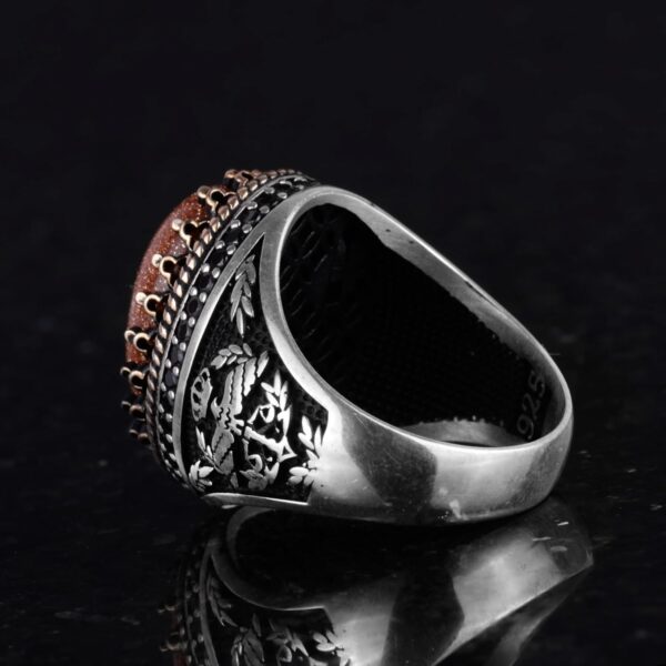 925 Ayar Gümüş Yüzük, Yapay Taş Yüzük, Şahin Sembol Yüzük, El Yapımı Yüzük (Yapılan kahverengi güneş)