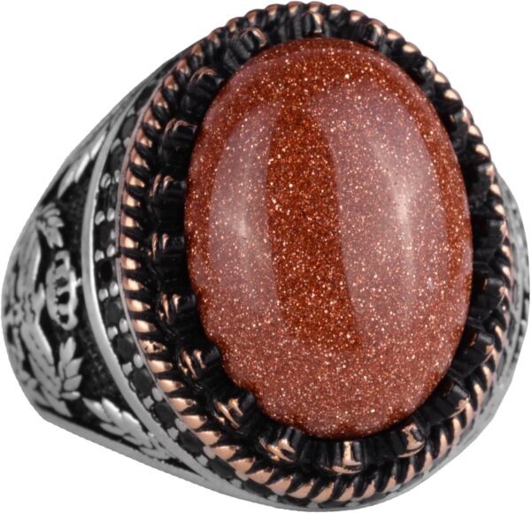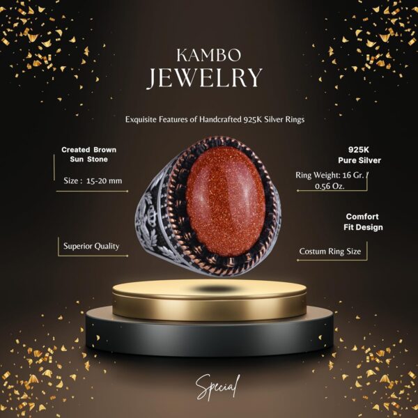 Bu yüzüğün merkezinde, enerji, iyimserlik ve kararlılıkla ilişkilendirilen zengin, ışıltılı rengiyle seçilen bir oluşturulmuş kahverengi güneş taşı bulunmaktadır. Kahverengi güneş taşı, tasarıma lüks bir dokunuş ekleyerek, takılarında hem güzellik hem de anlamı önemseyenler için mükemmel bir seçenek haline getirir.