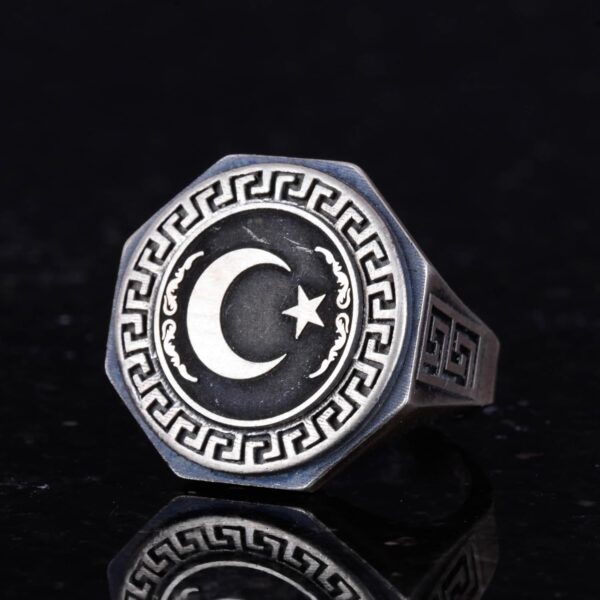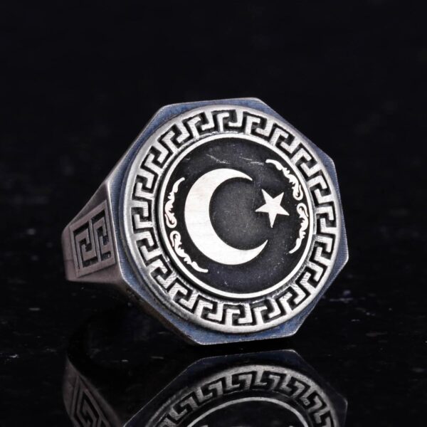 925 Ayar Gümüş Yüzük – Yunan Anahtar Desenli Erkek Yüzüğü – El Yapımı Yüzük