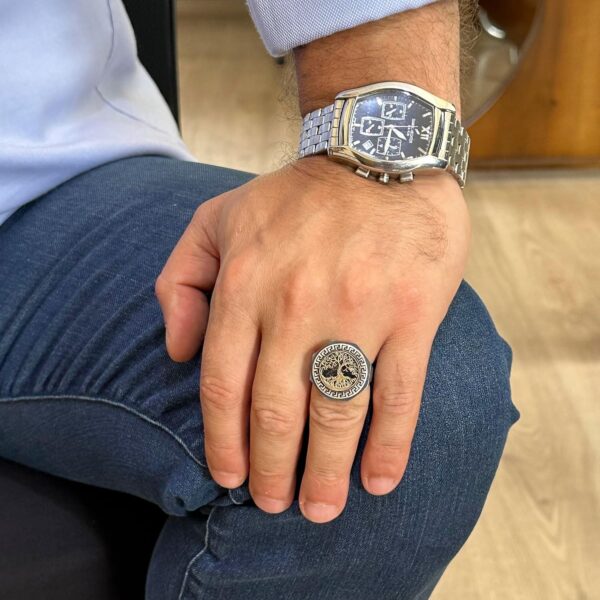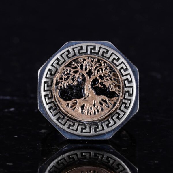 925 Ayar Gümüş Yüzük – Yunan Anahtarı Tasarımı Erkek Yüzüğü – El Yapımı Yüzük (Hayat Ağacı)