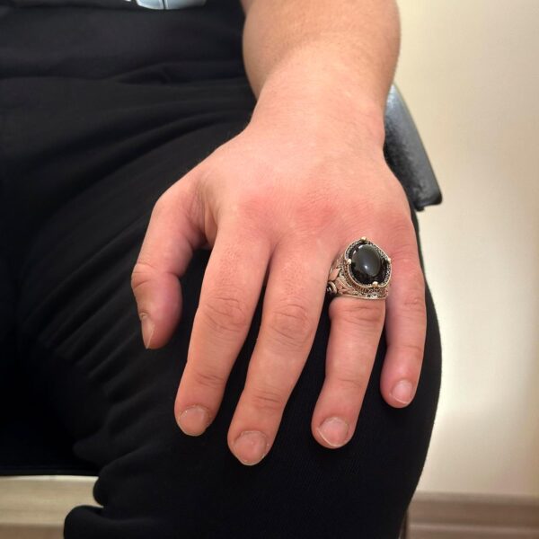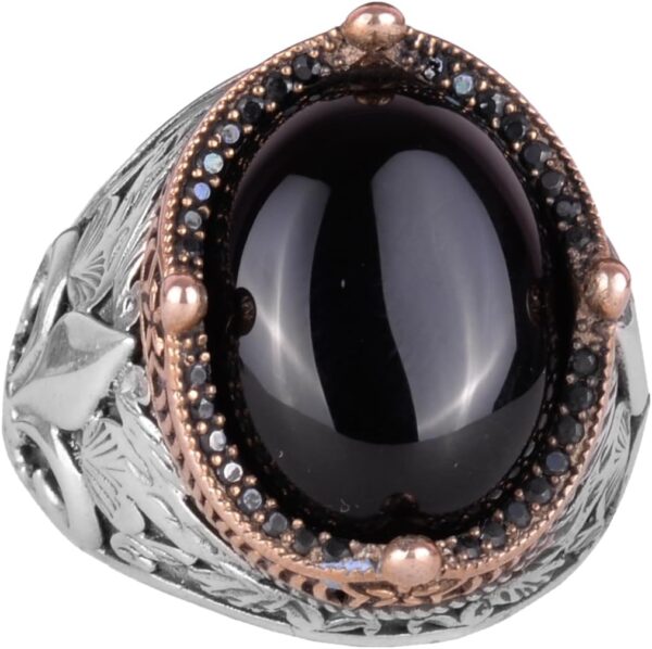 925 Ayar Gümüş Yüzükler Premium Üretilmiş Taşlarla (Cabochon Oniks Üretilmiş)