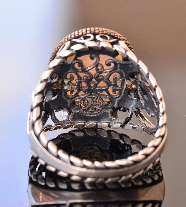 925 Ayar Katı Gümüş Erkek Yüzüğü – Doğal Taşlarla İşlenmiş El Yapımı Zarafet (Kehribar Taşı)