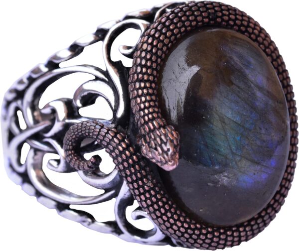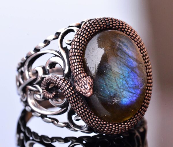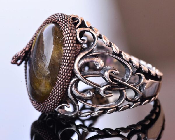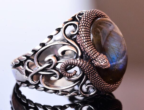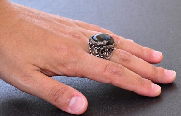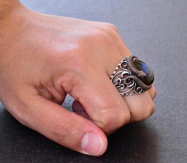 925 Ayar Katı Gümüş Erkek Yüzük – Doğal Labrodor Taşı ile El Yapımı Şıklık