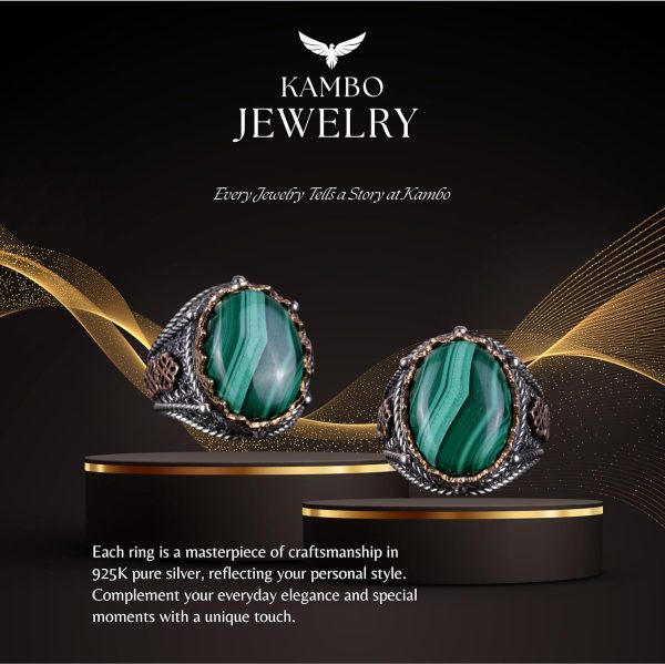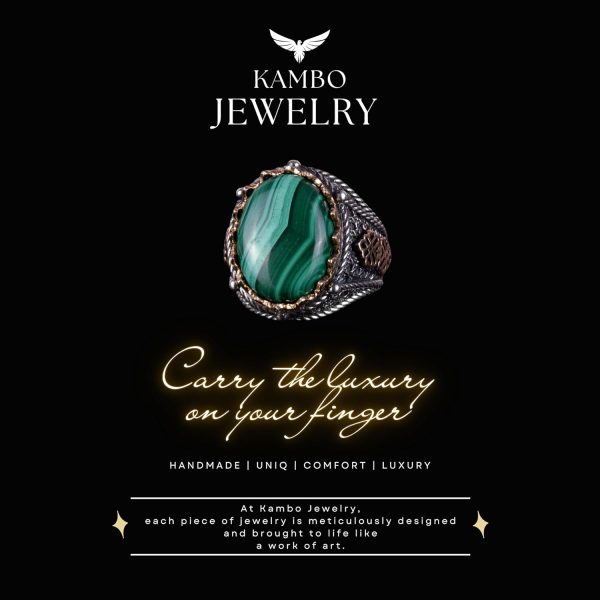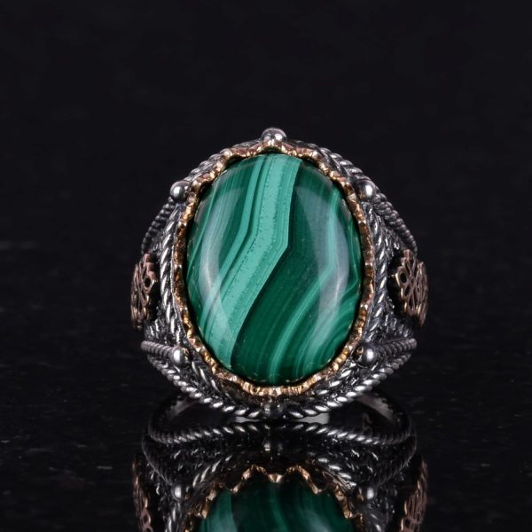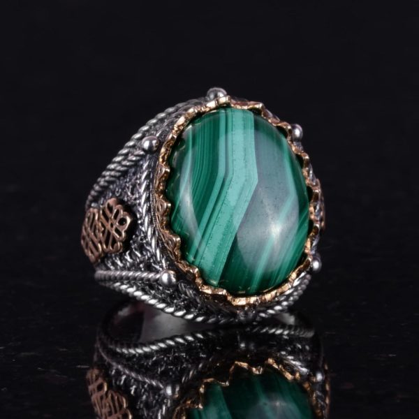 925 Ayar Katı Gümüş Erkek Yüzük, Doğal Malakit Taşlı Yüzük