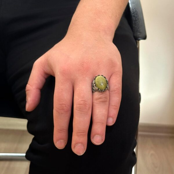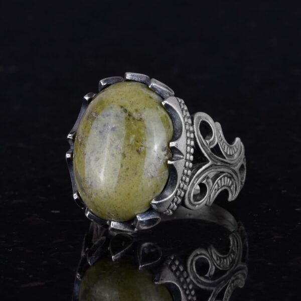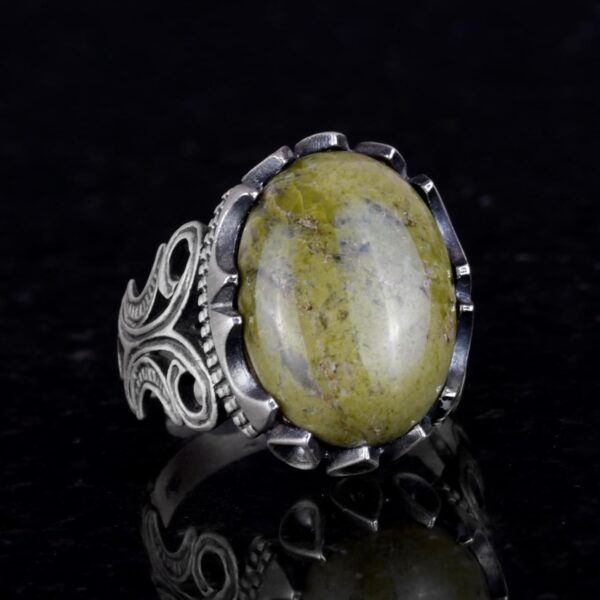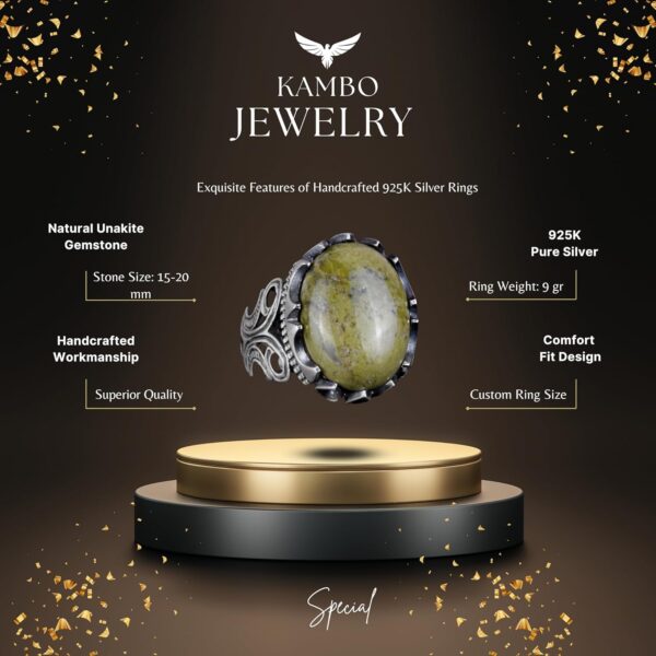 925 Ayar Katı Gümüş Erkek Yüzük, Doğal Taş Seçeneği – El Yapımı Tasarım (Unakite)