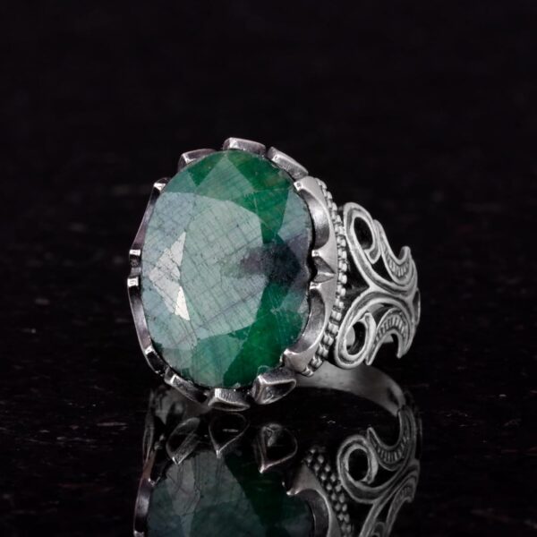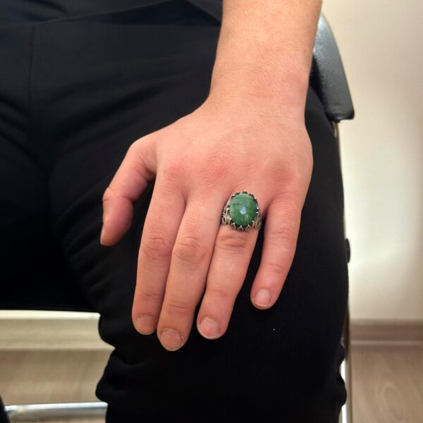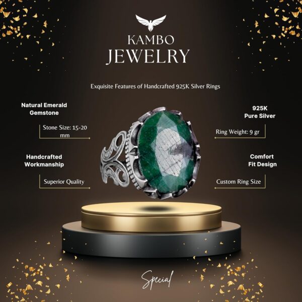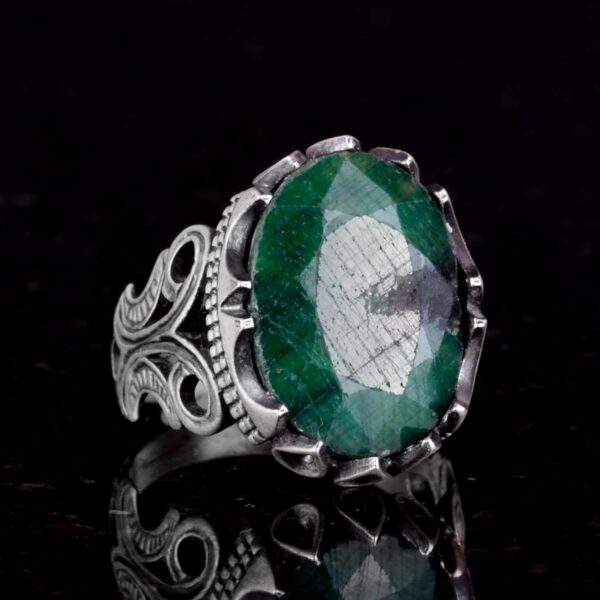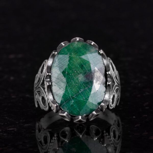 925 Ayar Katı Gümüş Erkek Yüzük, Doğal Taş Seçeneği – El Yapımı Tasarım (Zümrüt)