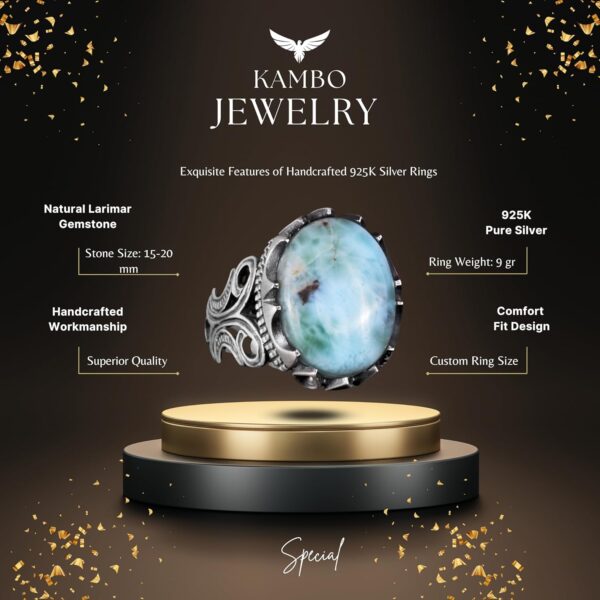 925 Ayar Katı Gümüş Erkek Yüzük – Doğal Taş Seçeneği ile El Yapımı Tasarım (Larimar)