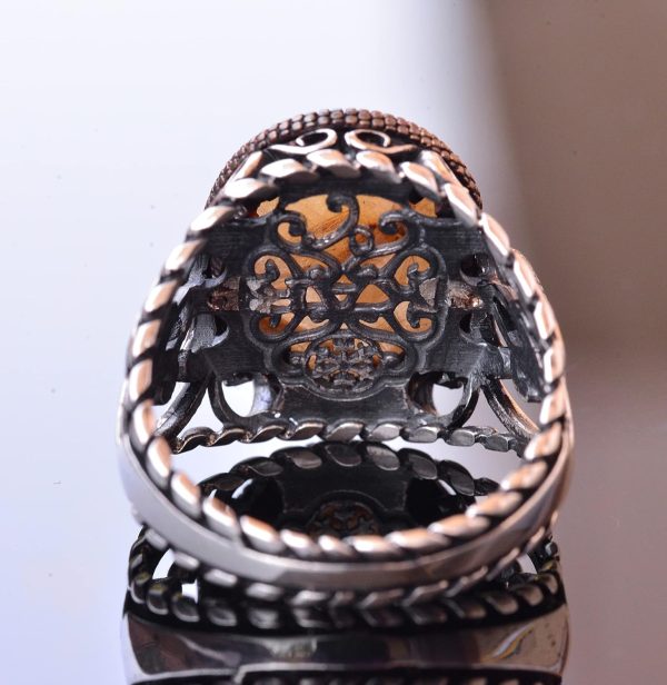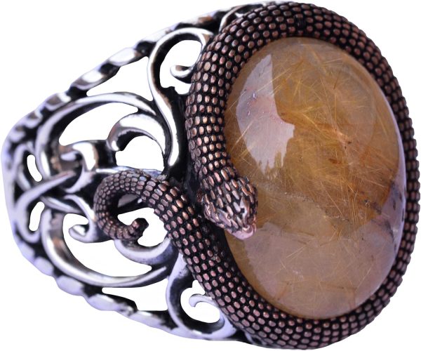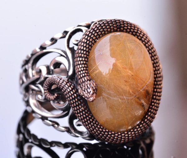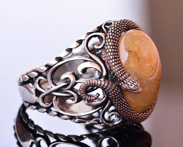 925 Ayar Katı Gümüş Erkek Yüzük Doğal Taşlarla – El Yapımı Şıklık (Altın Rutile Kuvars Taşı)