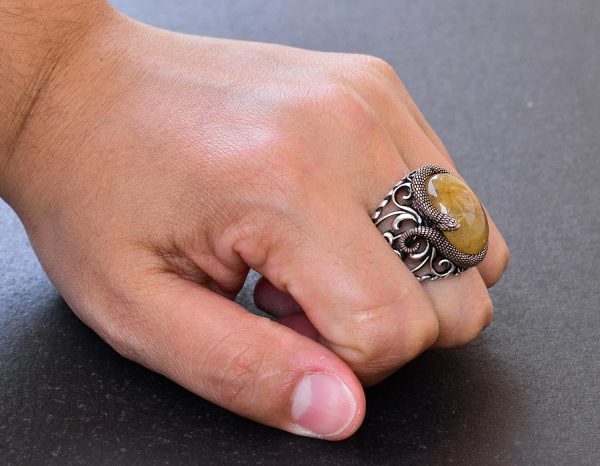 FALCON JEWELRY’nin Yılan 925K Gümüş Erkek Doğal Taş Yüzüğü ile antik mistisizm dünyasına adım atın. Bu koleksiyon, kültürler boyunca güç ve bilgelik için saygı duyulan yılanların zamansız sembolizmini, doğal taşların cazibesiyle birleştiriyor. Her yılan figürü, çevrelediği taşla uyumlu olacak şekilde özenle işlenmiştir ve bu da yüzüğü sadece bir stil ifadesi değil, aynı zamanda içsel güç ve korumanın bir simgesi haline getirir. Her yüzük, efsanevi yılan mitolojisi ile benzersiz bir bağlantı sunan, mükemmel bir şekilde el yapımı olan sanatsal bir kutlamadır.