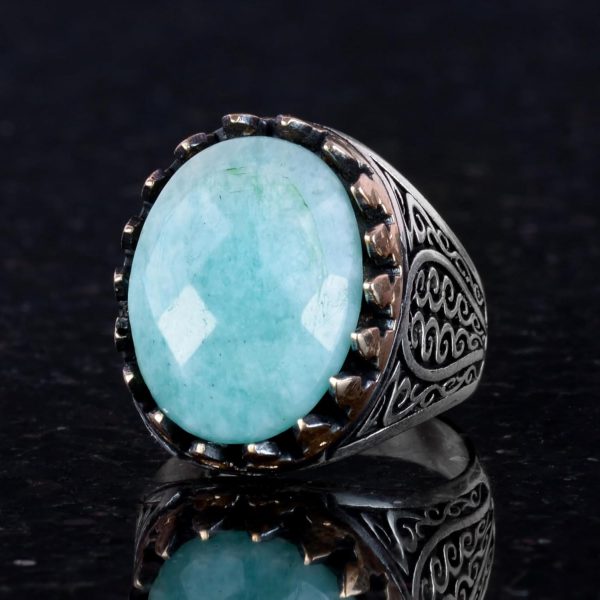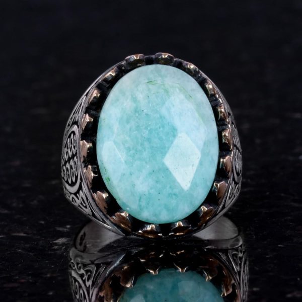 925 Ayar Katı Gümüş Erkek Yüzük Doğal Taşlarla – El Yapımı Şıklık (Amazonit Taşı)
