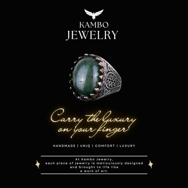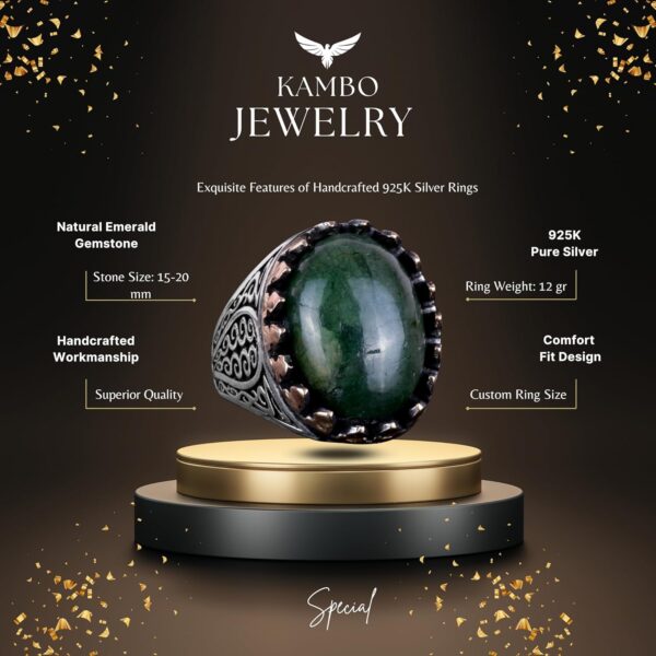 925 Ayar Katı Gümüş Erkek Yüzük Doğal Taşlarla – El Yapımı Şıklık (Cabochon Zümrüt Taşı)