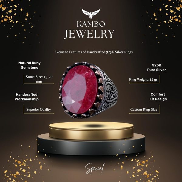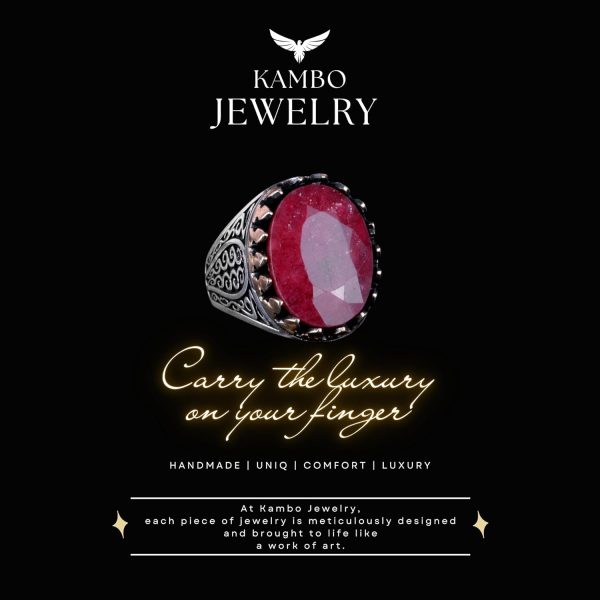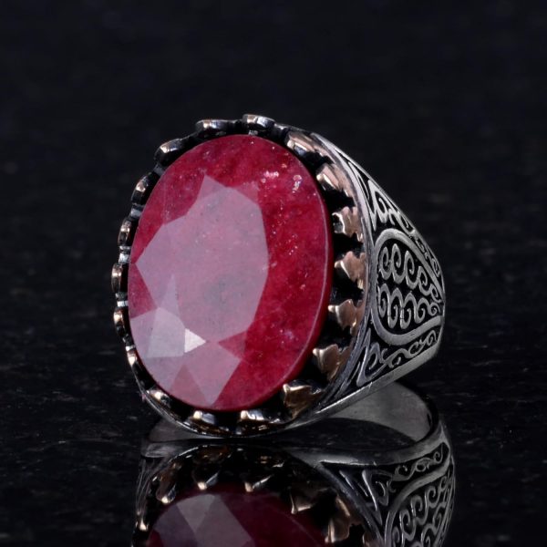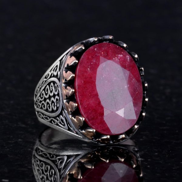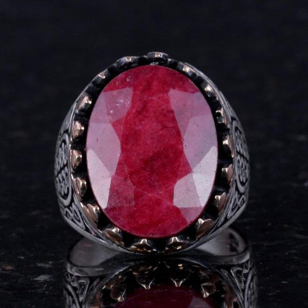 925 Ayar Katı Gümüş Erkek Yüzük Doğal Taşlarla – El Yapımı Şıklık (Fasetli Yakut Taş)