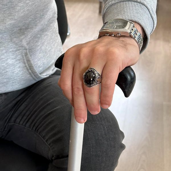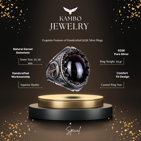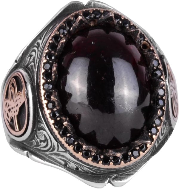 925 Ayar Katı Gümüş Erkek Yüzük Doğal Taşlarla – El Yapımı Şıklık (Granat Taşı)