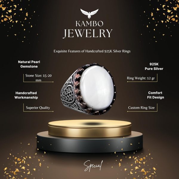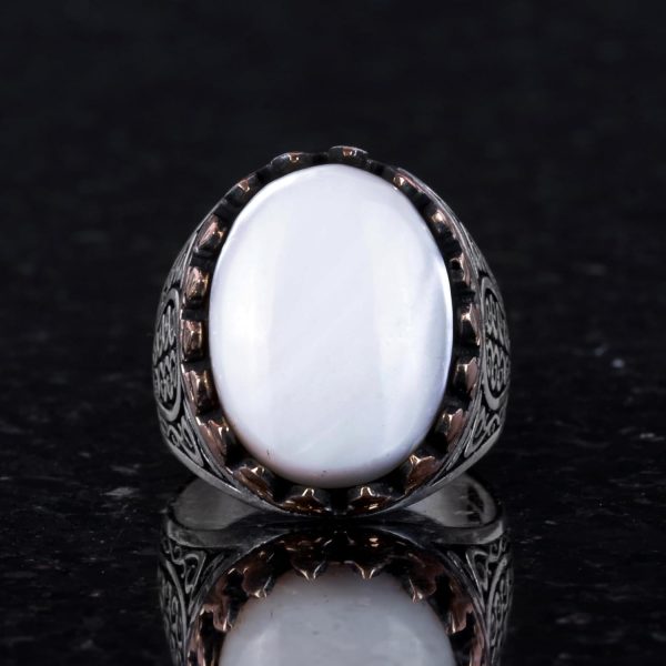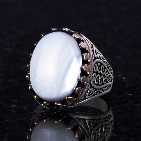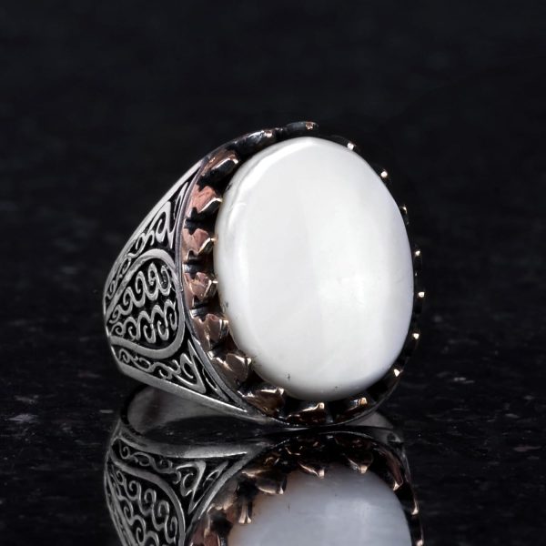 925 Ayar Katı Gümüş Erkek Yüzük – Doğal Taşlarla El Yapımı Şıklık (İnci Taşı)