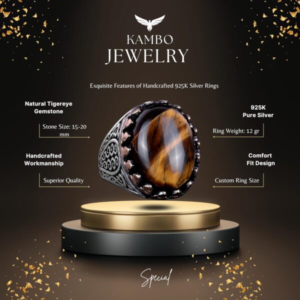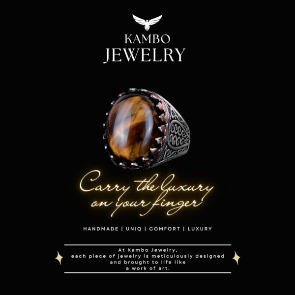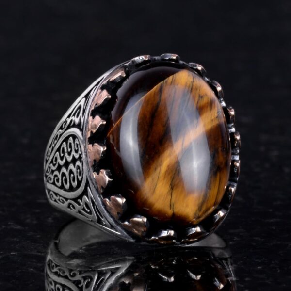 925 Ayar Katı Gümüş Erkek Yüzük – Doğal Taşlarla El Yapımı Şıklık (Kaplan Göz Taşı)