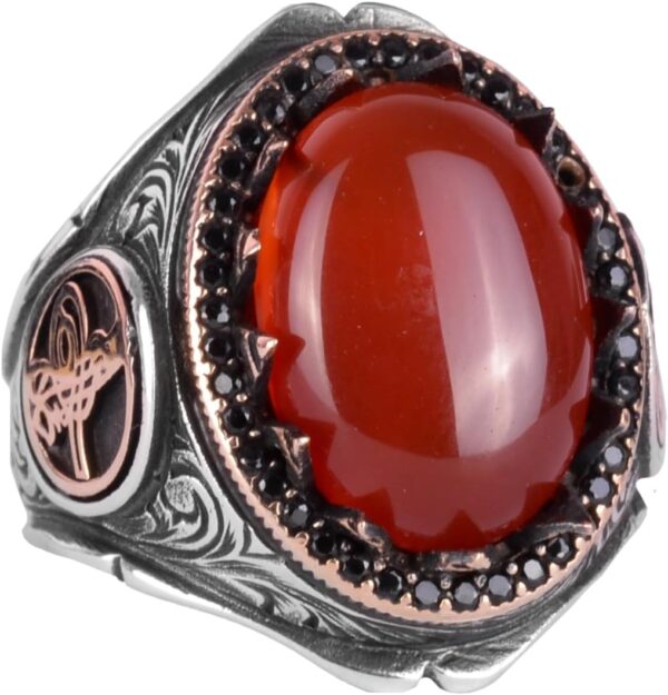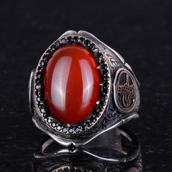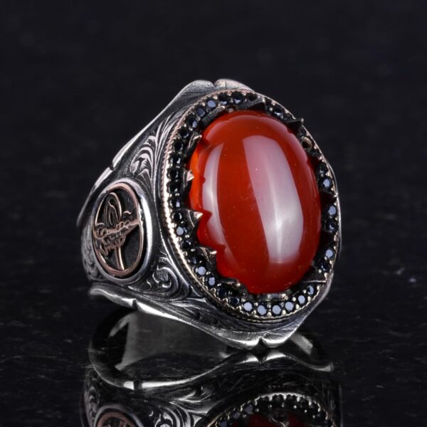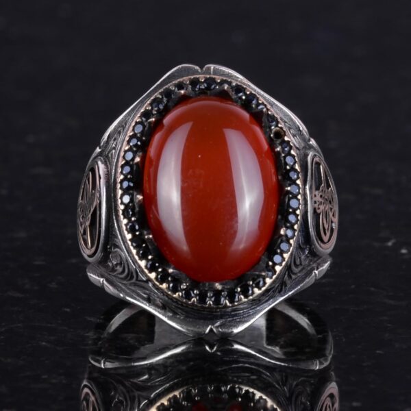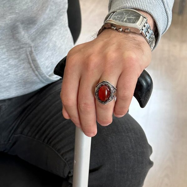 925 Ayar Katı Gümüş Erkek Yüzük Doğal Taşlarla – El Yapımı Şıklık (Kırmızı Akik Taşı)