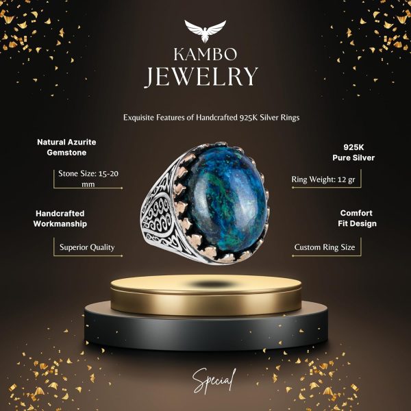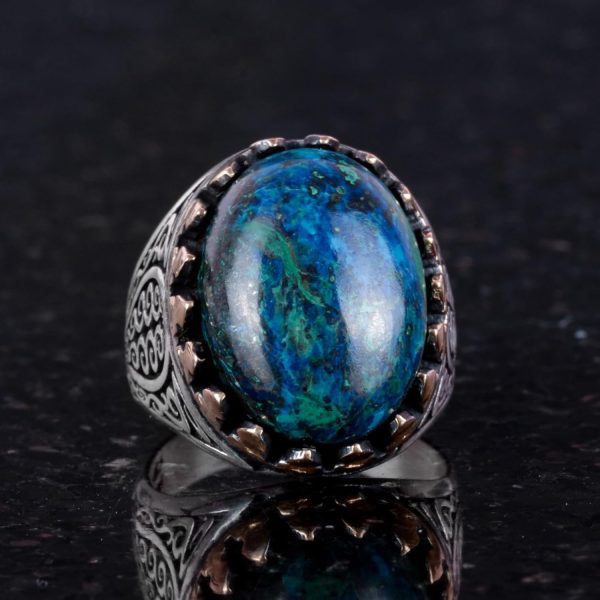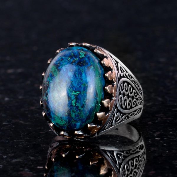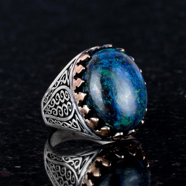 925 Ayar Katı Gümüş Erkek Yüzük Doğal Taşlarla – El Yapımı Zarafet (Azurit Taşı)