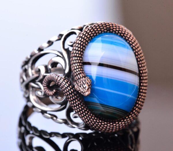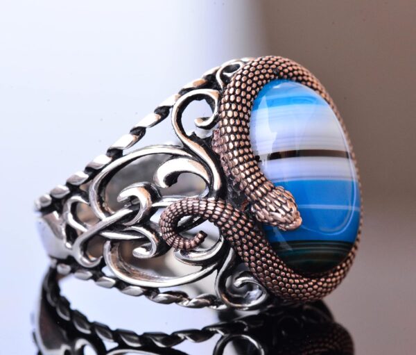 FALCON JEWELRY’nin Yılan 925K Gümüş Erkek Doğal Taş Yüzüğü ile antik gizemler dünyasına adım atın. Bu koleksiyon, kültürler boyunca güç ve bilgelik için saygı gören yılanların zamansız sembolizmini, doğal taşların çekiciliğiyle birleştiriyor. Her yılan figürü, çevresini sardığı taşla uyumlu olacak şekilde özenle işlenmiştir; bu da sadece bir stil ifadesi değil, aynı zamanda içsel güç ve koruma sembolü olan bir yüzük yaratır. Her yüzük, efsanevi yılan mitolojisiyle benzersiz bir bağlantı sunarak, mükemmel bir şekilde el yapımı sanatsal bir kutlamadır.