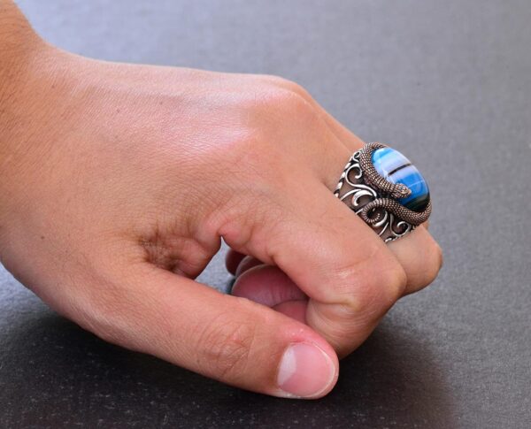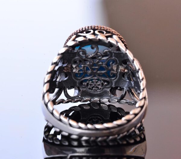 925 Ayar Katı Gümüş Erkek Yüzük, Doğal Taşlarla – El Yapımı Zarafet (Mavi Akik Taşı)