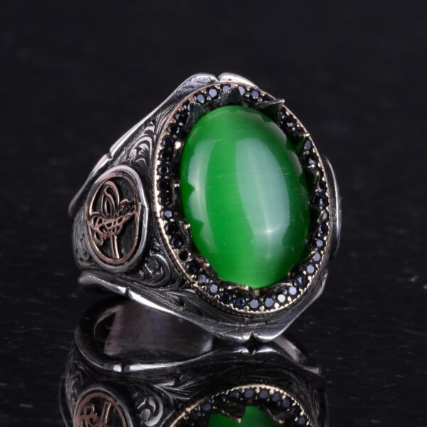 925 Ayar Katı Gümüş Erkek Yüzük Doğal Taşlarla – El Yapımı Zarafet (Yeşil Göztaşı)