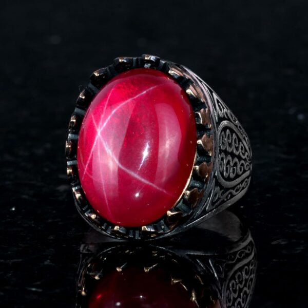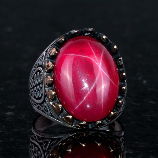 925 Ayar Katı Gümüş Erkek Yüzük Doğal Yıldız Yakut Taşı ile | El Yapımı Zarafet