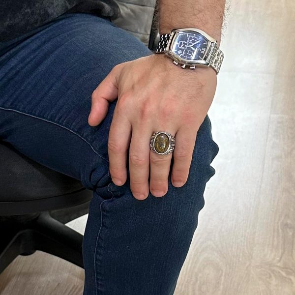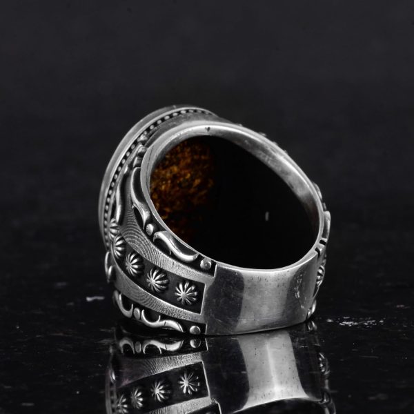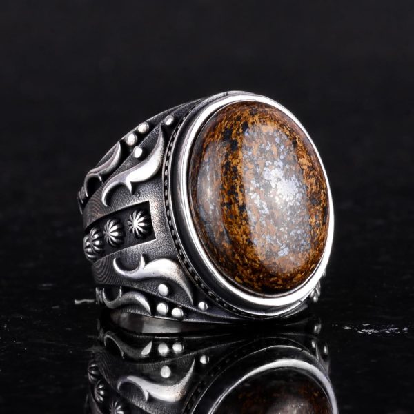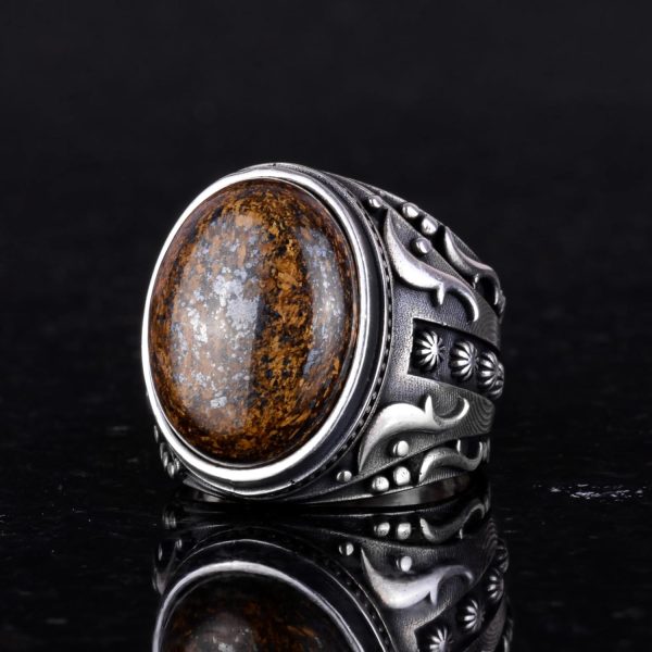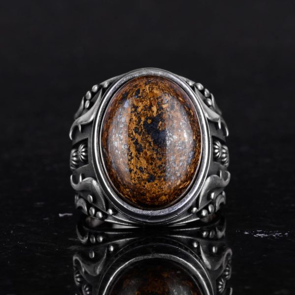925 Ayar Katı Gümüş Erkek Yüzük, El Yapımı Gerçek Doğal Bronzit Taş Yüzük, Tasarım Gümüş Erkek Yüzük