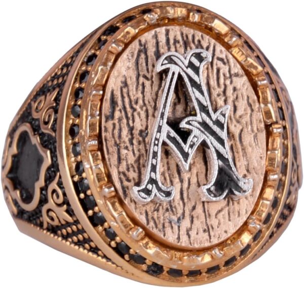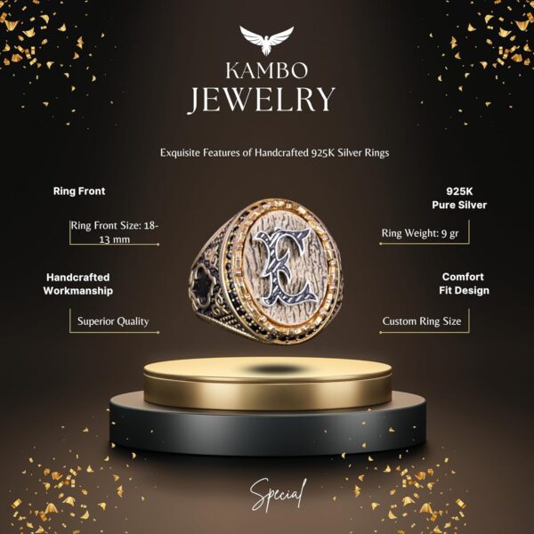 925 Ayar Katı Gümüş Erkek Yüzük – Kişiselleştirilmiş Monogram Harfli Yüzük ile Zirkon Taş – El Yapımı Gümüş Takı Erkekler için