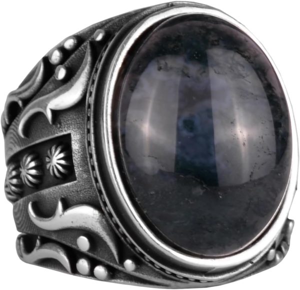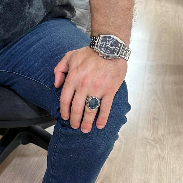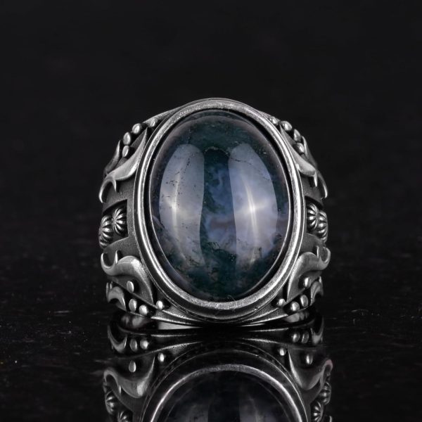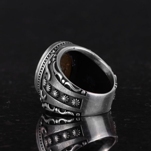 925 Ayar Katı Gümüş Erkek Yüzük, Süslemeli Agat Taşlı Yüzük – El Yapımı Zarafet
