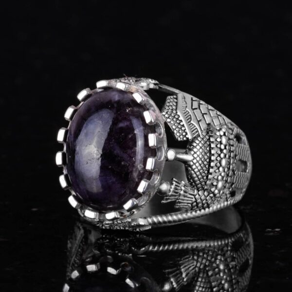 925 Ayar Katı Gümüş Erkek Yüzük, Taşlı Erkek Yüzük (Mavi Safir)