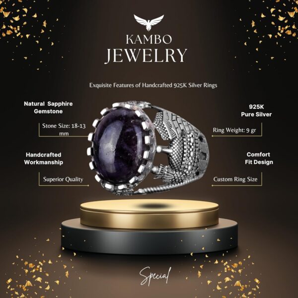 Majestik zarafet dünyasına adım atın, El yapımı Mavi Safir Taşlı Yüzüğümüzle. Premium 925K katı gümüşte tasarlanan bu yüzük, yüzyıllardır gökyüzünün sembolü olarak saygı gören Mavi Safir’in büyüleyici cazibesini sergiliyor. Sadakat, bilgelik ve bütünlük ile derin bir bağlantısı ile bilinen Mavi Safir, odaklanmayı ve zihinsel netliği artırır. Her parça, KAMBO’nun en derin değerleriniz ve hayallerinizle rezonansa giren takılar yaratma konusundaki özverisini yansıtan bir sevgi ve hassasiyet emek ürünüdür. Yüzük Ağırlığı: 9gr Taş Boyutu: 18-13mm
