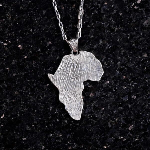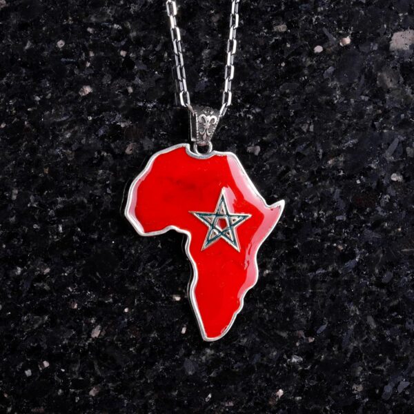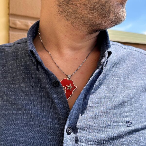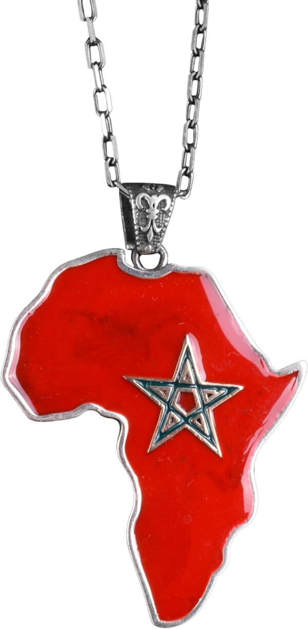 925 Ayar Katı Gümüş Harita Kolye (Fas) ile Kablo Zincir