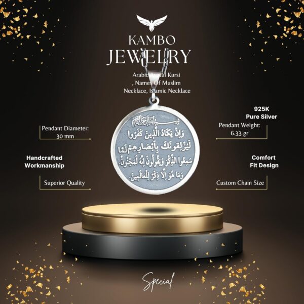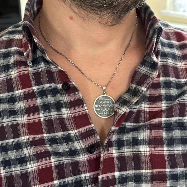 925 Ayar Katı Gümüş Kolye, Erkek Kolyesi, İslami Kolye, El Yapımı Müslüman Kolye, Kur’an Kolyesi, Ayet-el Kürsi Kolyesi