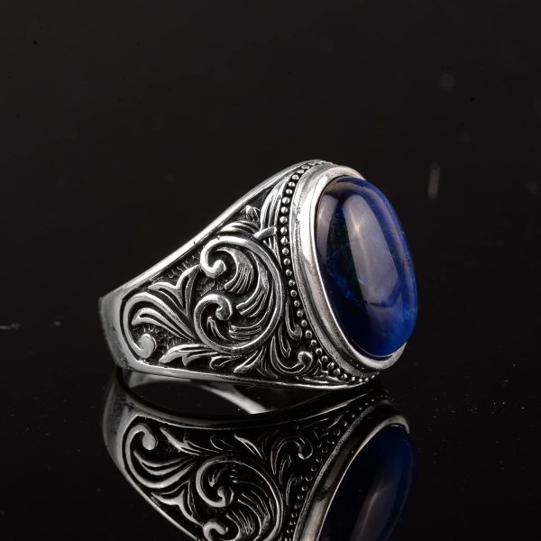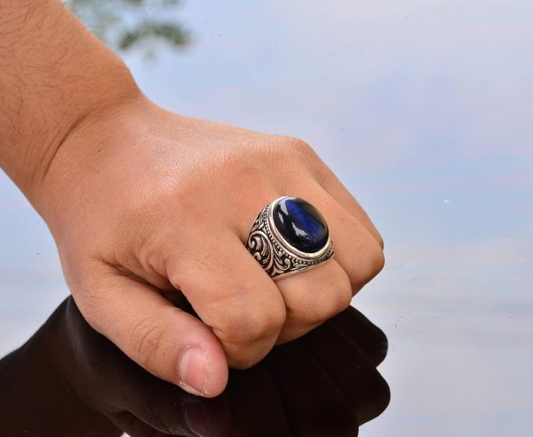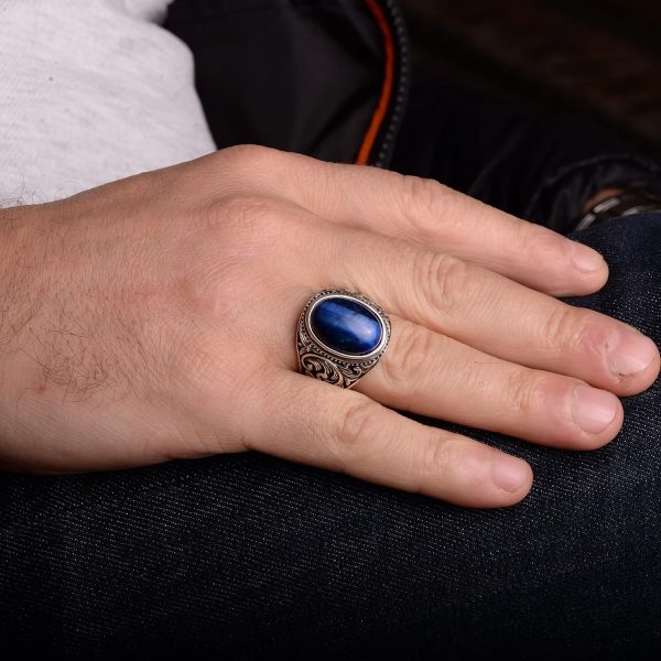 925 Ayar Gümüş Mavi Kaplan Göz Taşı Erkek Yüzüğü