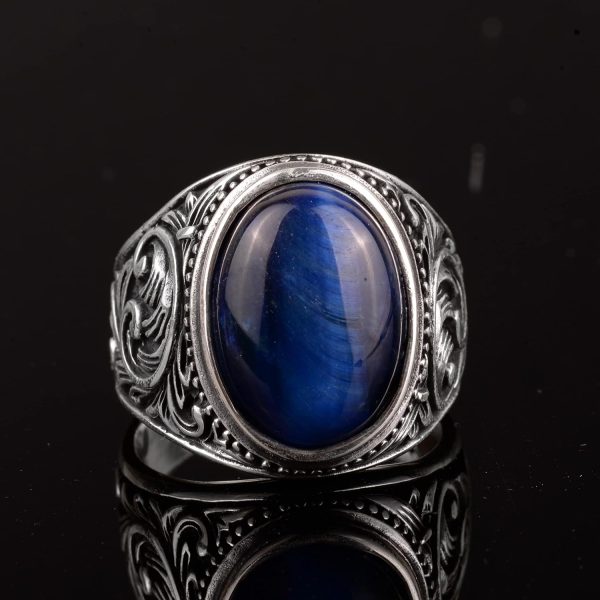 925 Ayar Katı Gümüş Mavi Kedi Gözü Taşı Erkek Yüzük – El Yapımı Stacking Yüzük