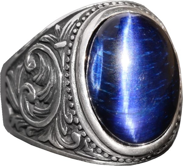 Doğal mavi kaplan göz taşı sadece güzel olmakla kalmaz, aynı zamanda koruyucu ve dengeleyici özellikleriyle de bilinir. Bu yüzük, günlük kullanım veya özel günler için ideal olan çok yönlü ve şık bir tasarıma sahiptir.