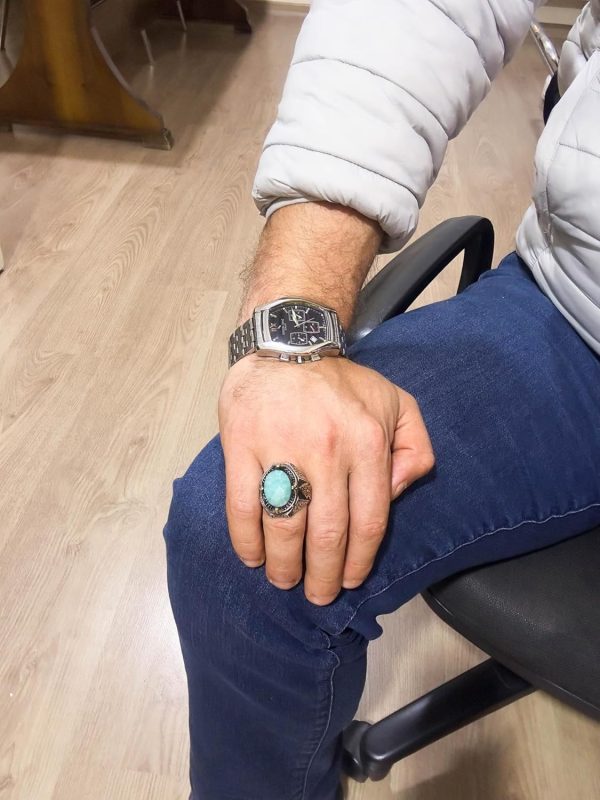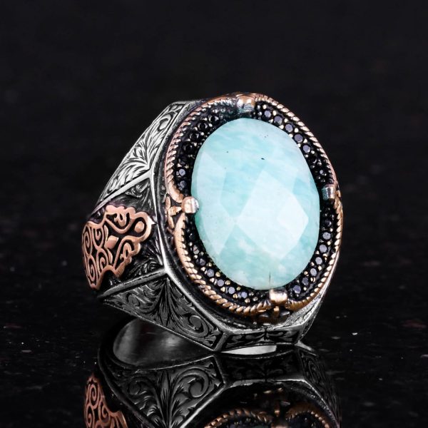 925 Ayar Katı Gümüş Yüzük – Doğal Amazonit Taşlı Yüzük
