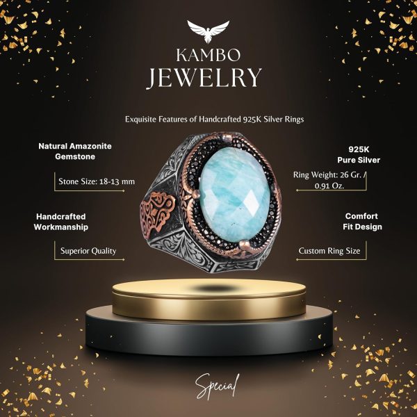 KAMBO Eşsiz Tasarım 925 Ayar Gümüş Yüzük – Doğal Amazonit Taşı Yüzük