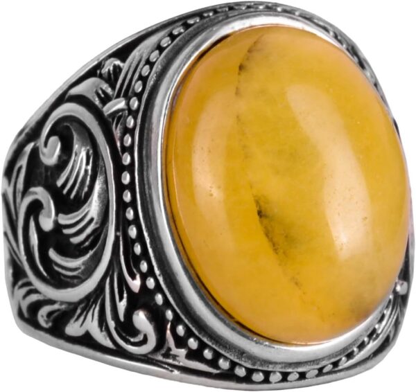 KAMBO 925 Katı Gümüş Yüzük – Doğal Sarı Akik Taşı Yüzük, Tasarım Gümüş Erkek Yüzüğü