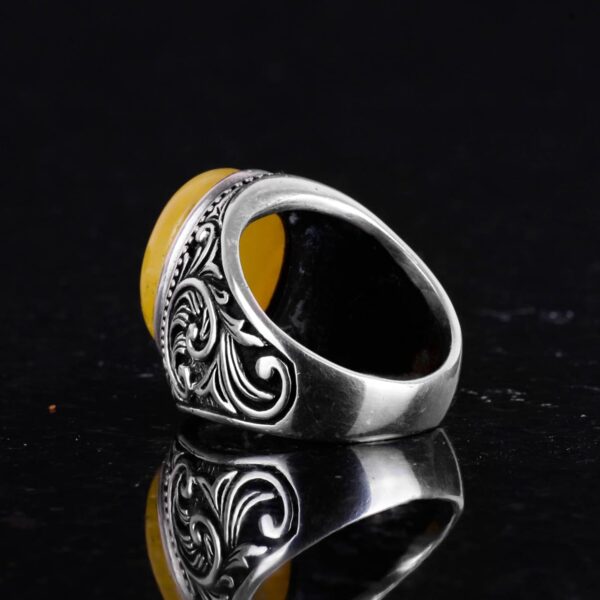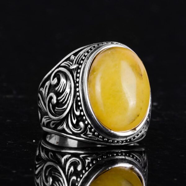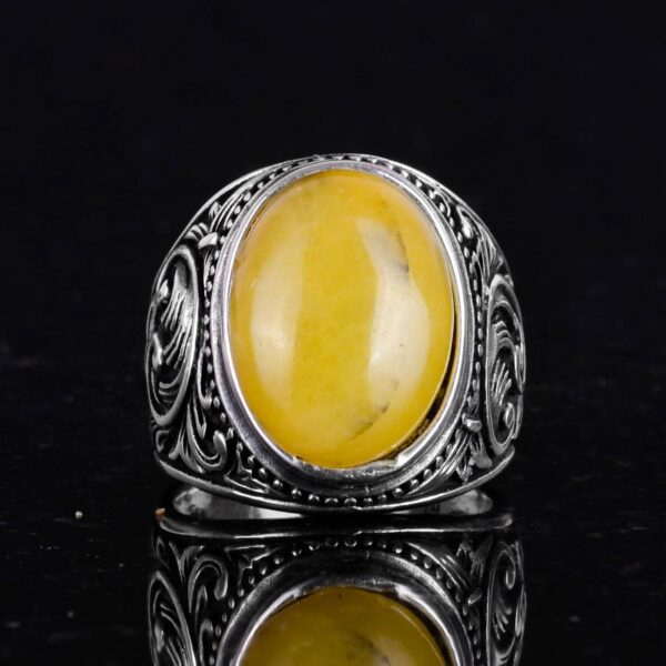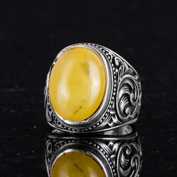925 Ayar Katı Gümüş Yüzük – Doğal Sarı Akik Taşlı Yüzük, Tasarım Gümüş Erkek Yüzüğü