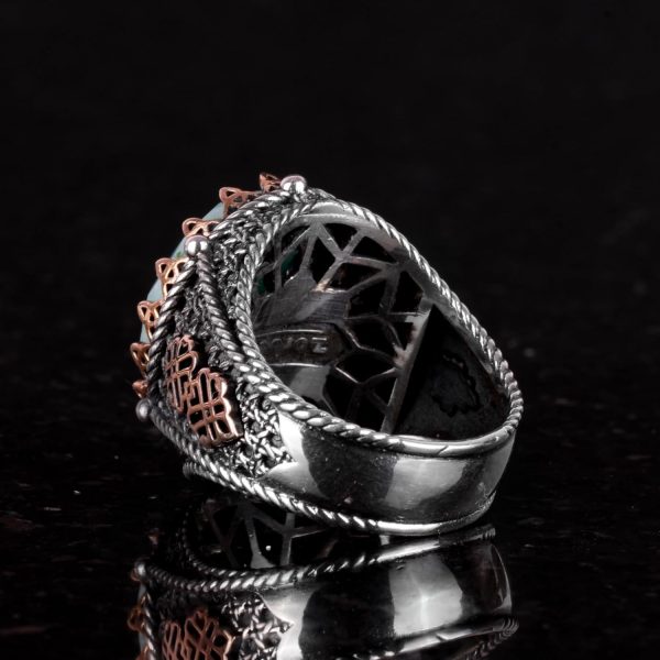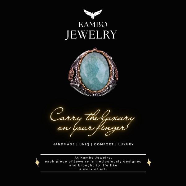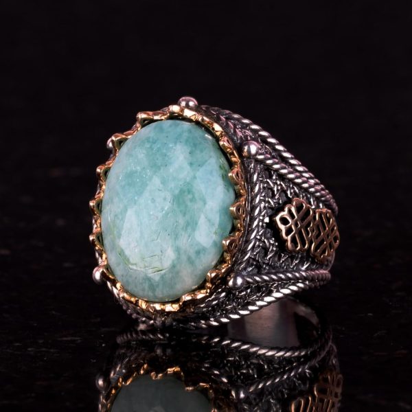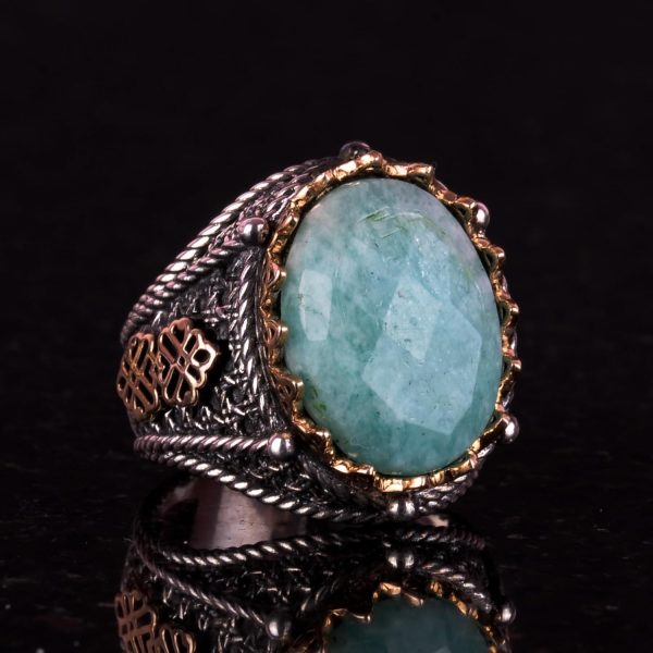 925 Ayar Katı Gümüş Yüzük, Gerçek Doğal Taş Yüzük (Amazonit)