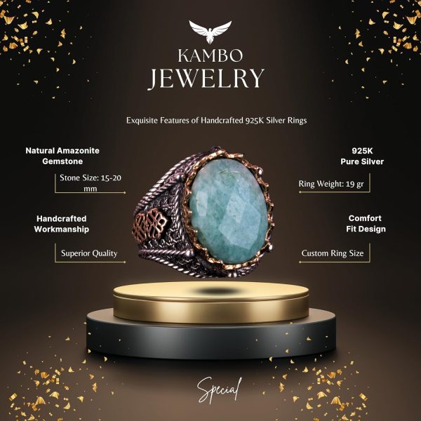 KAMBO Özel Koleksiyonu, 925K Saf Gümüş Erkek Yüzüklerimizin benzersiz zarafetini keşfetmeye davet ediyor. Her biri doğal taşlarla zenginleştirilmiş olan bu koleksiyondaki taşlar, kendine has güzellikleri ve getirdikleri enerji ile seçilmiştir. El yapımı yüzüklerimiz, zarif işçiliğin bir kanıtıdır ve lüks ile kişisel ifadeyi yansıtır. KAMBO, ince takı dünyasına samimi bir yolculuk sunarak, yüzüğünüzü tam istediğiniz boyutta ve tercihinize göre kişiselleştirme imkanı sunar. Doğa ve sanatı bir araya getiren olağanüstü taşlı yüzüklerimizle tanışın; her biri kalite, tatmin ve zamansız zarafet vaadi taşır. Yüzük Ağırlığı: 19gr Taş Boyutu: 15-20mm
