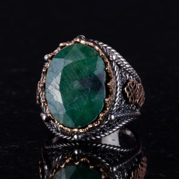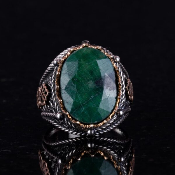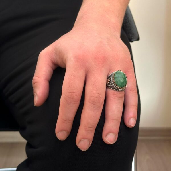 925 Ayar Katı Gümüş Yüzük, Gerçek Doğal Taş Yüzük (Zümrüt)